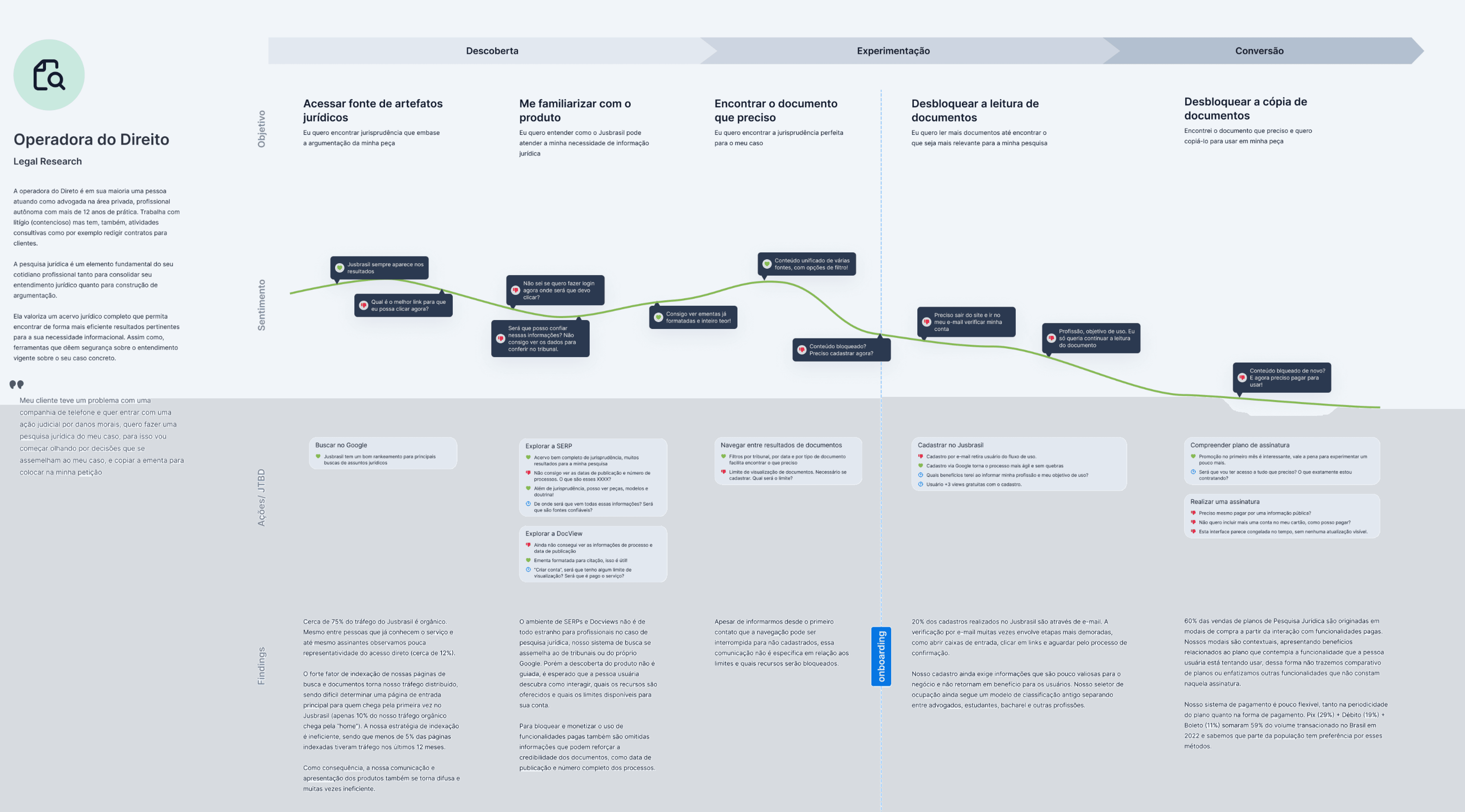 As Jusbrasil scaled its subscription business, recurring signals from support tickets, cancellations, user research, and journey analysis pointed to the same issue: monetization problems were often rooted in gaps in communication over time.