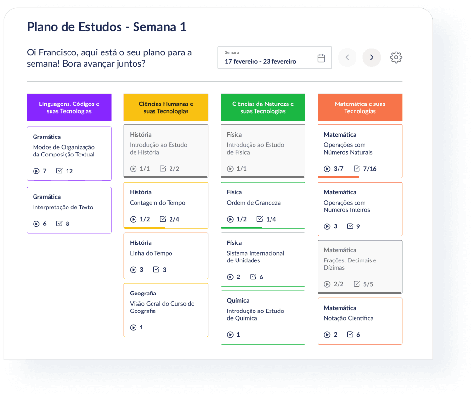 Content is organized by knowledge areas, with clear progress indicators and a consistent rhythm that helps students focus on what matters now — not everything they need to study until the end of the year.